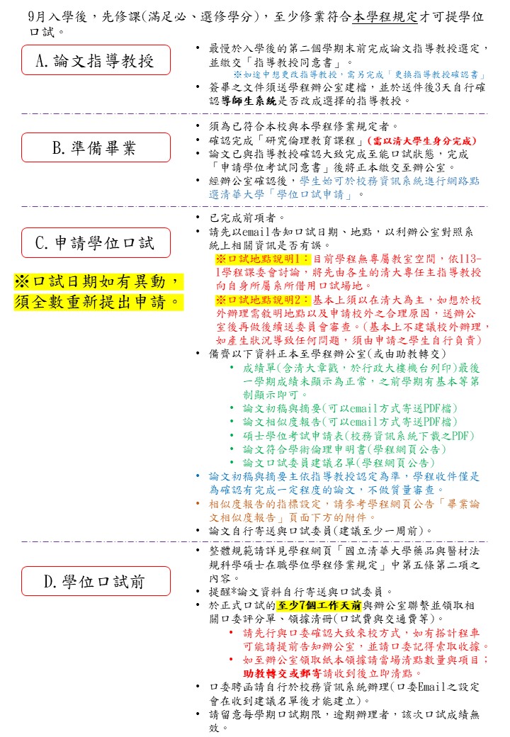 藥品與醫材法規科學碩士在職學位學程 碩士學位口試申請SOP